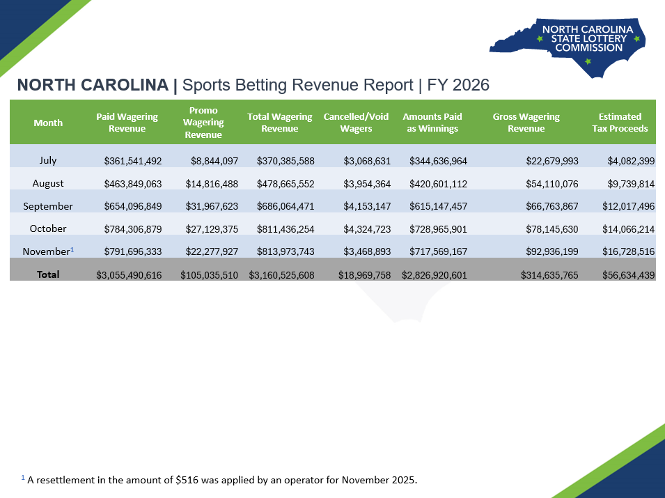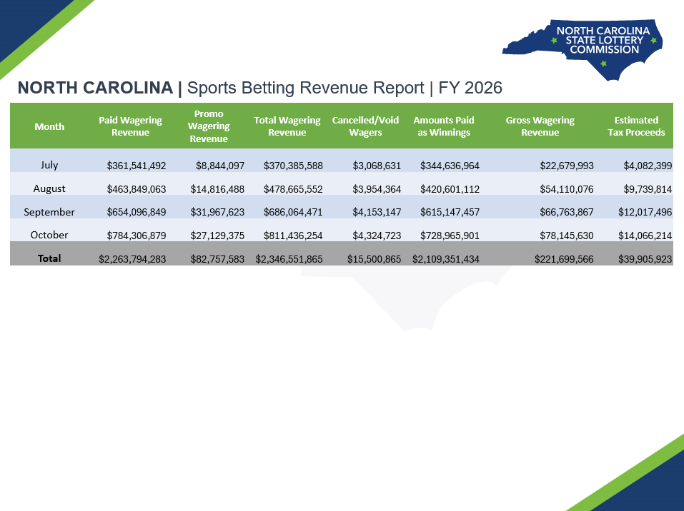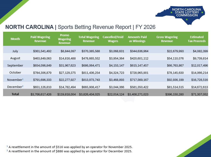 Sports wagering revenue reports are released by the Commission monthly. These reports show how much money people placed on wagers for each month, as well as the total amounts in winnings, gross wagering revenue, and the estimated tax proceeds which goes to the state.